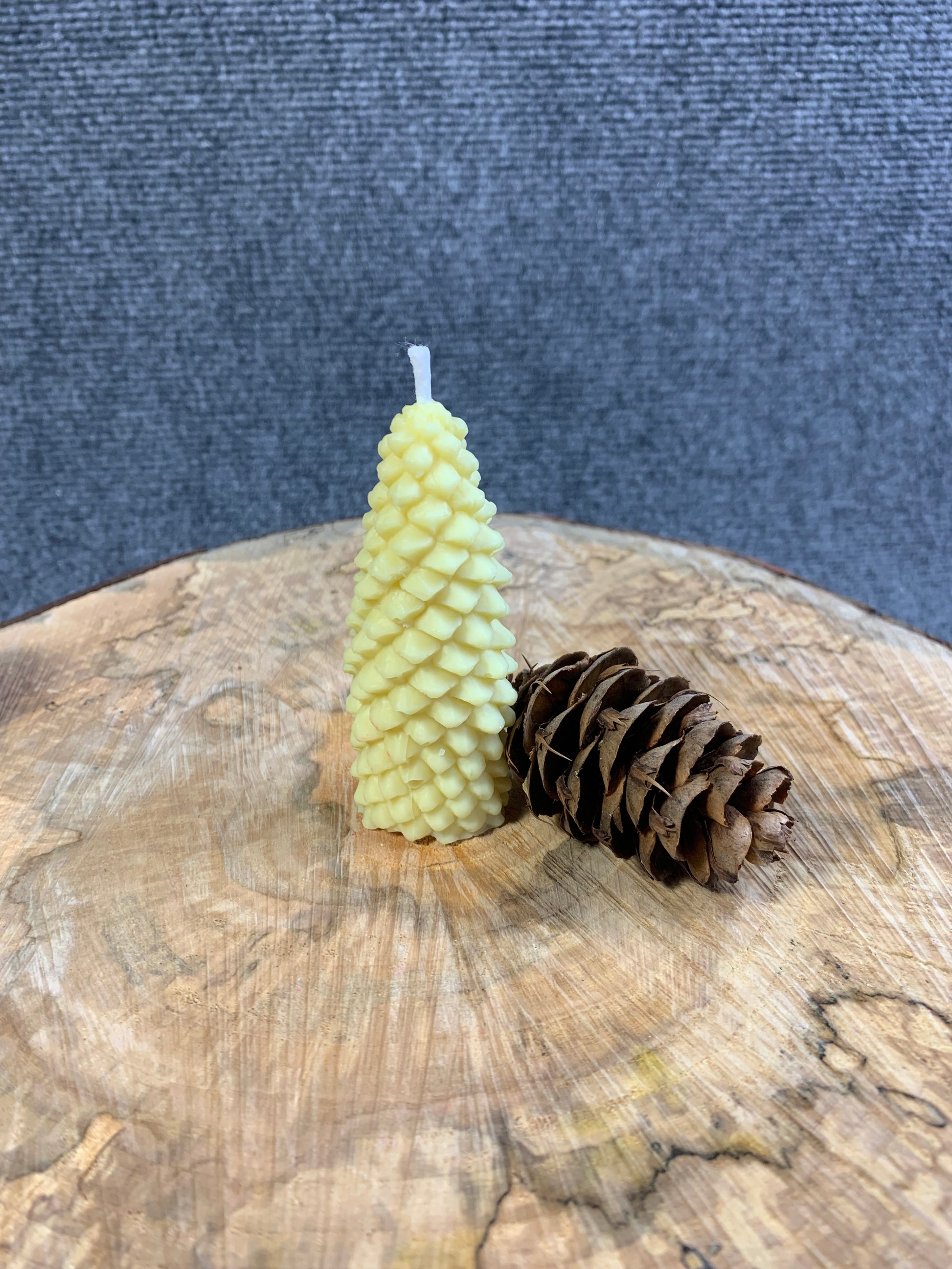 Handmade, pine and spiced citrus winter scent, soy and beeswax pinecone shaped candle.